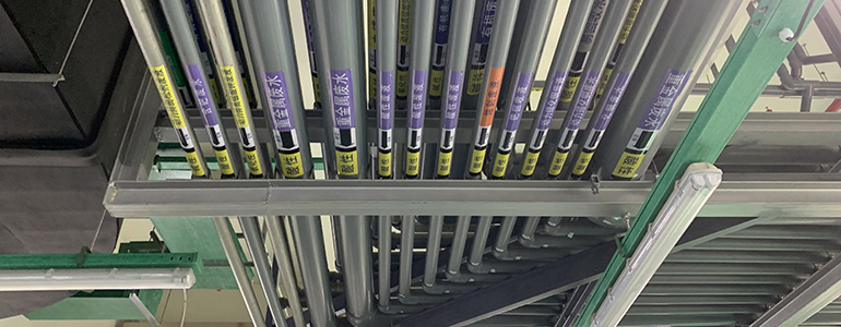 废水依产品及污染物特性分为20类以上,并依废水特性设计10大类处理系统。分别收集、处理及回收。